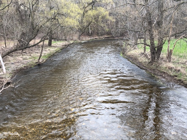 I decided to move to another spot on the stream because where I was standing was a tough location, standing thigh deep in very swift rushing water, and I found I was concentrating more on maintaining my footing than my casting technique.