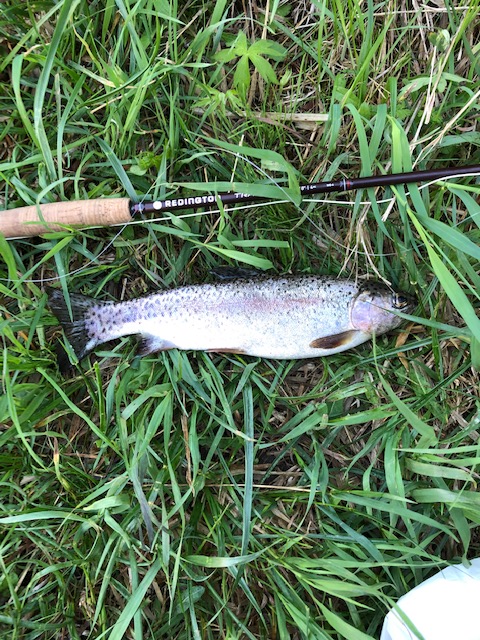 I kept casting to the pool in the same manner, but knowing my space limitations I decided to get my net ready in case there was another big one lurking in there. It was fortunate that I did, because a few casts later I pulled in a 14 inch rainbow trout! This time I had the net ready and was able to grab a picture.